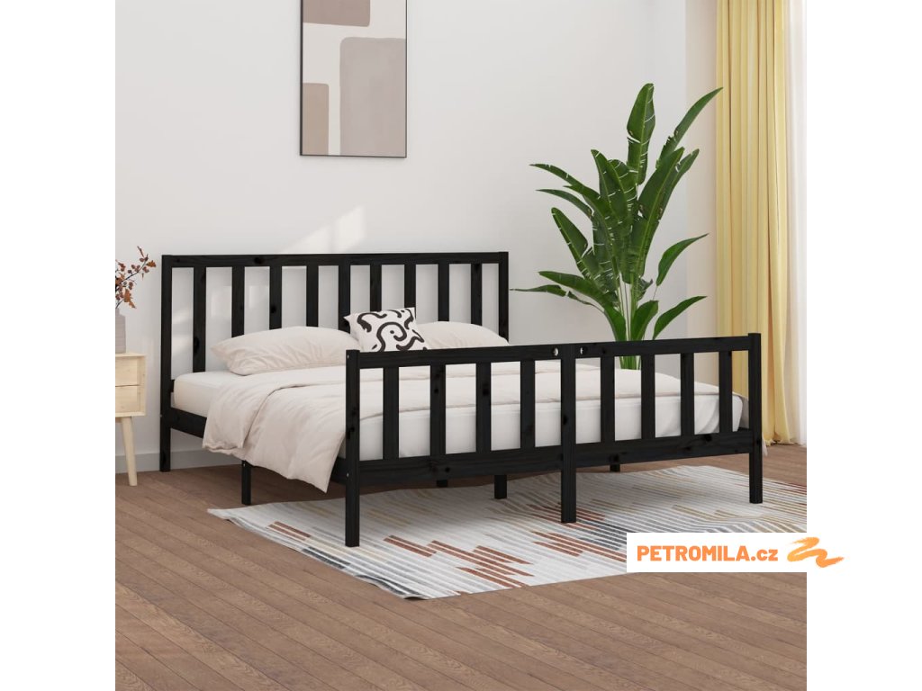 Rám postele černý masivní dřevo 200 x 200 cm