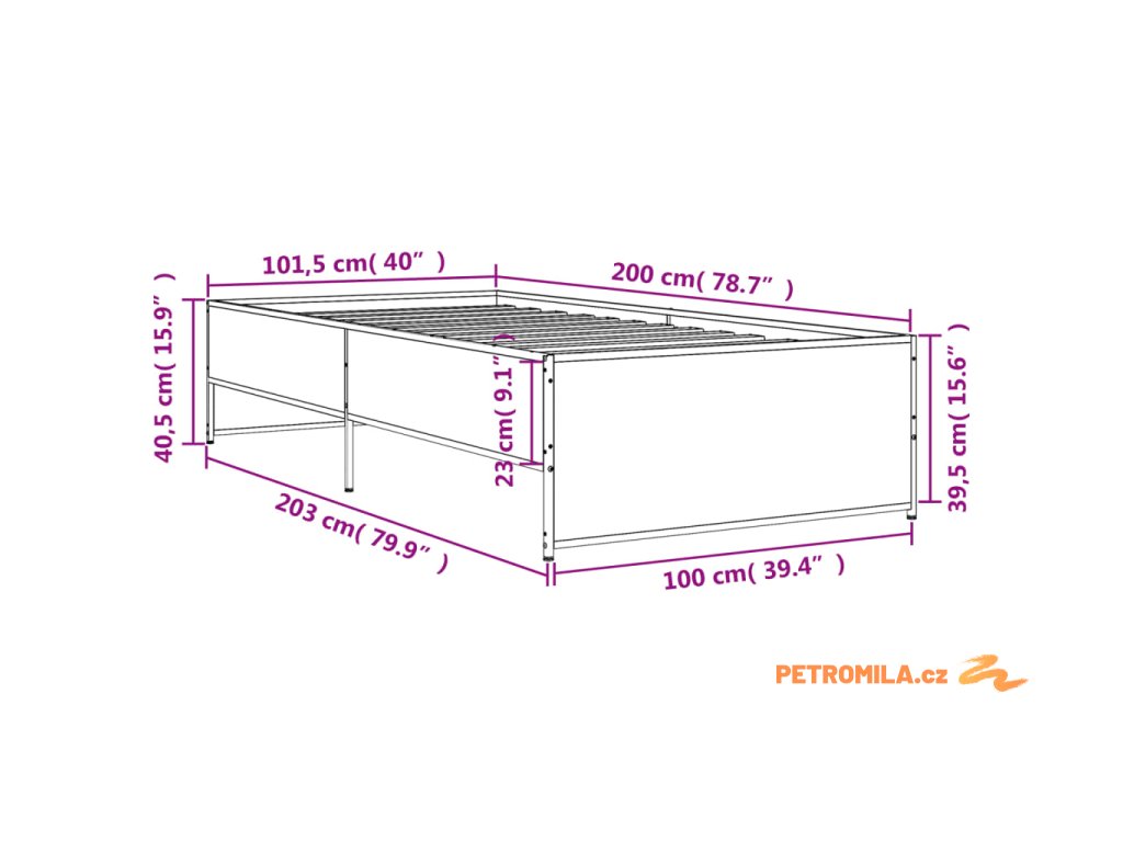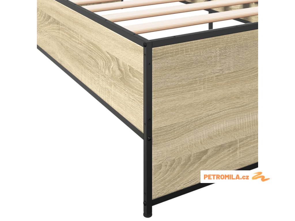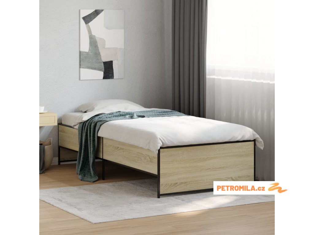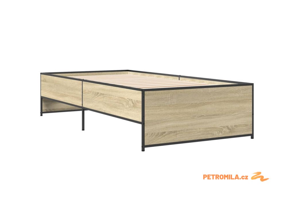 Rám postele dub sonoma 100 x 200 cm kompozitní dřevo a kov