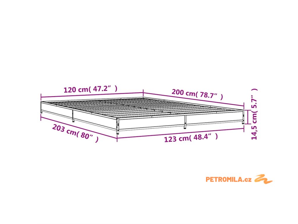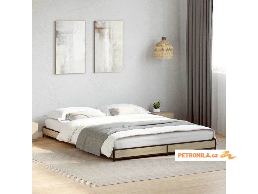 Rám postele dub sonoma 120 x 200 cm kompozitní dřevo a kov