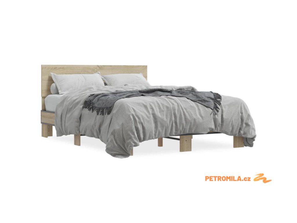 Rám postele dub sonoma 140 x 190 cm kompozitní dřevo a kov