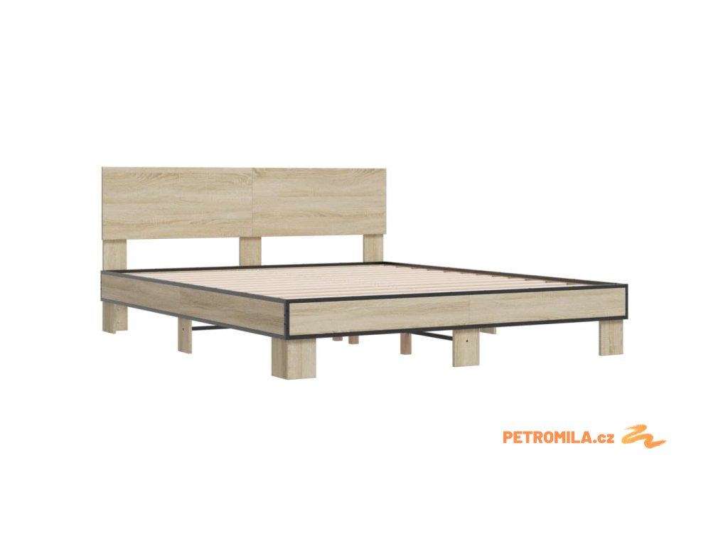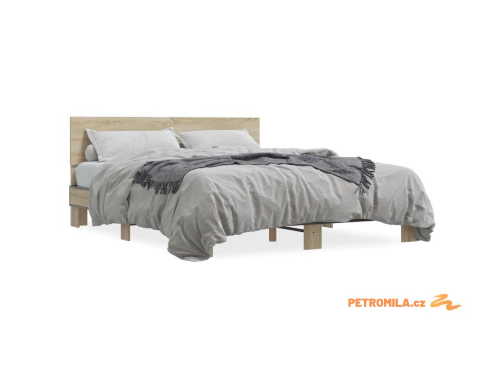 Rám postele dub sonoma 150 x 200 cm kompozitní dřevo a kov