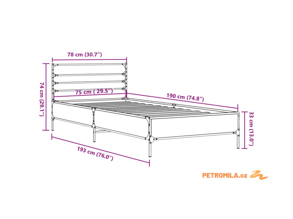 Rám postele dub sonoma 75 x 190 cm kompozitní dřevo a kov
