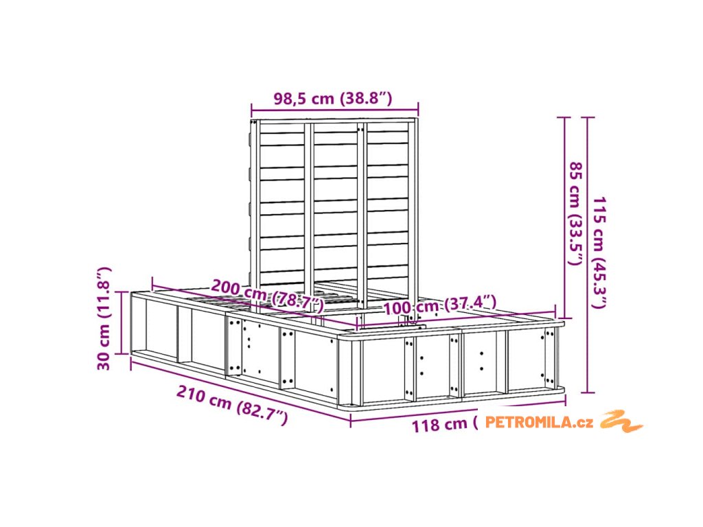 - Celkové rozměry: 210 x 118 x 30 cm (D x Š x V)