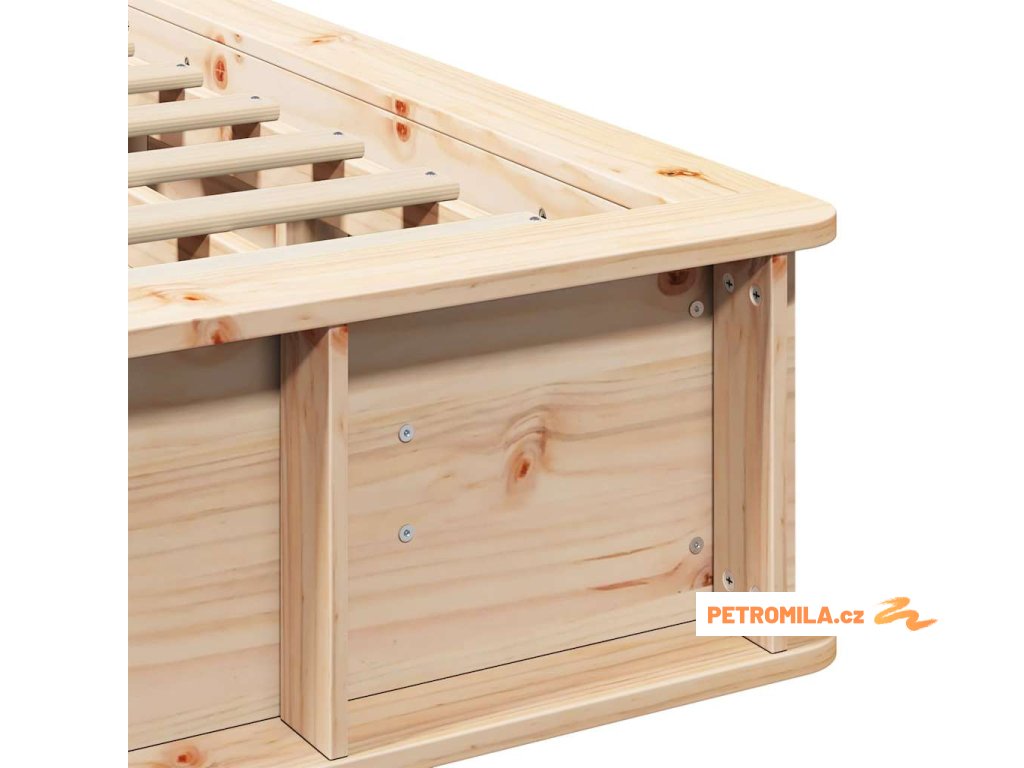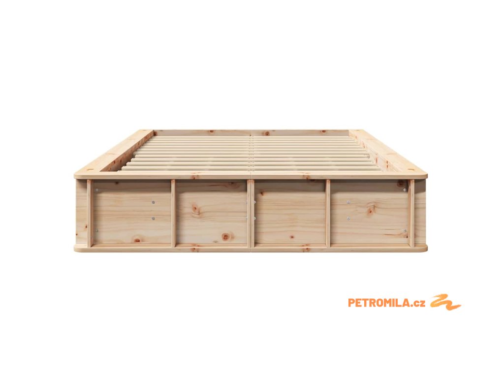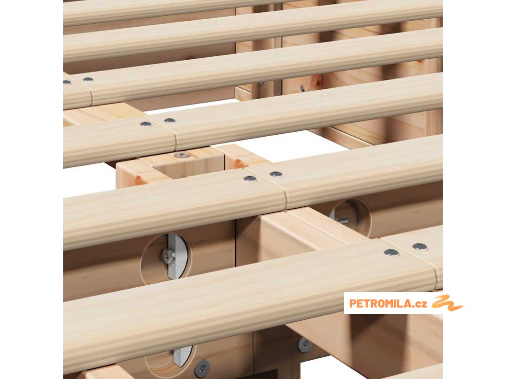 - Masivní borové dřevo: Rám postele je vyroben z odolného masivního borového dřeva, co dodává teplo a eleganci. Tento materiál zajišťuje atraktivní design a dlouhověkost pro pohodlný spánek po dlouhá léta.