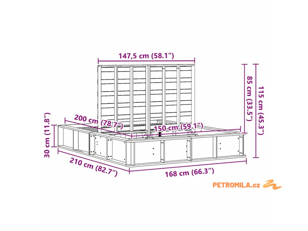 - Celkové rozměry: 210 x 168 x 30 cm (D x Š x V)