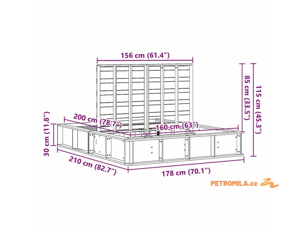 - Celkové rozměry: 210 x 178 x 30 cm (D x Š x V)