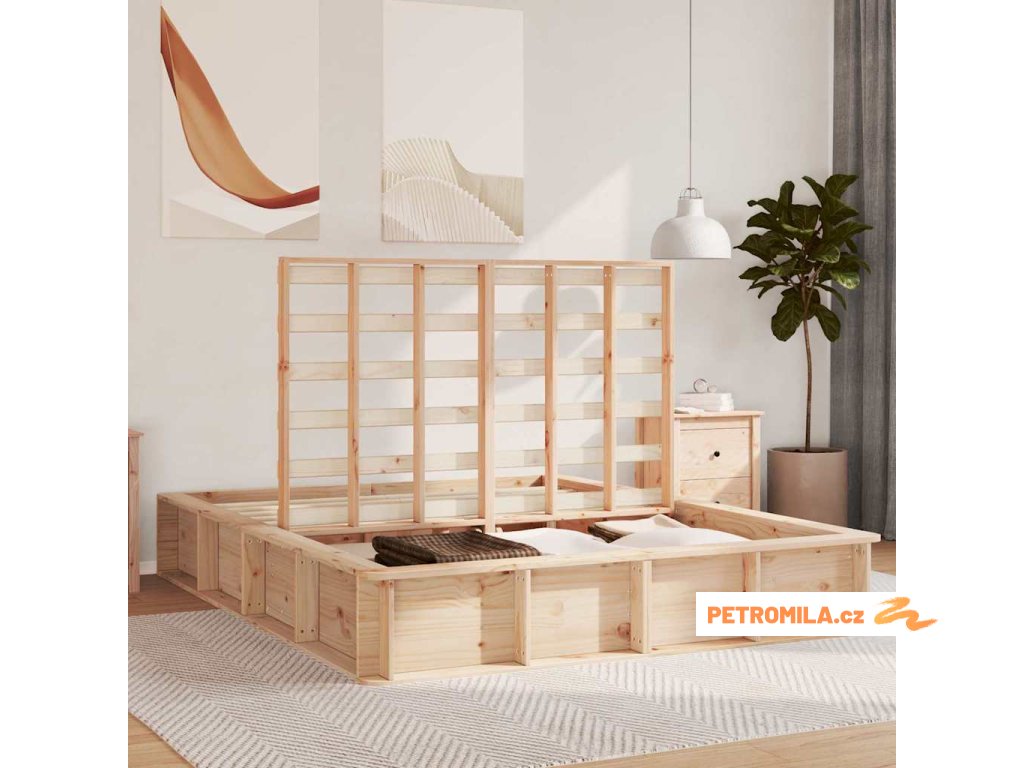 - Masivní borové dřevo: Rám postele je vyroben z odolného masivního borového dřeva, co dodává teplo a eleganci. Tento materiál zajišťuje atraktivní design a dlouhověkost pro pohodlný spánek po dlouhá léta.