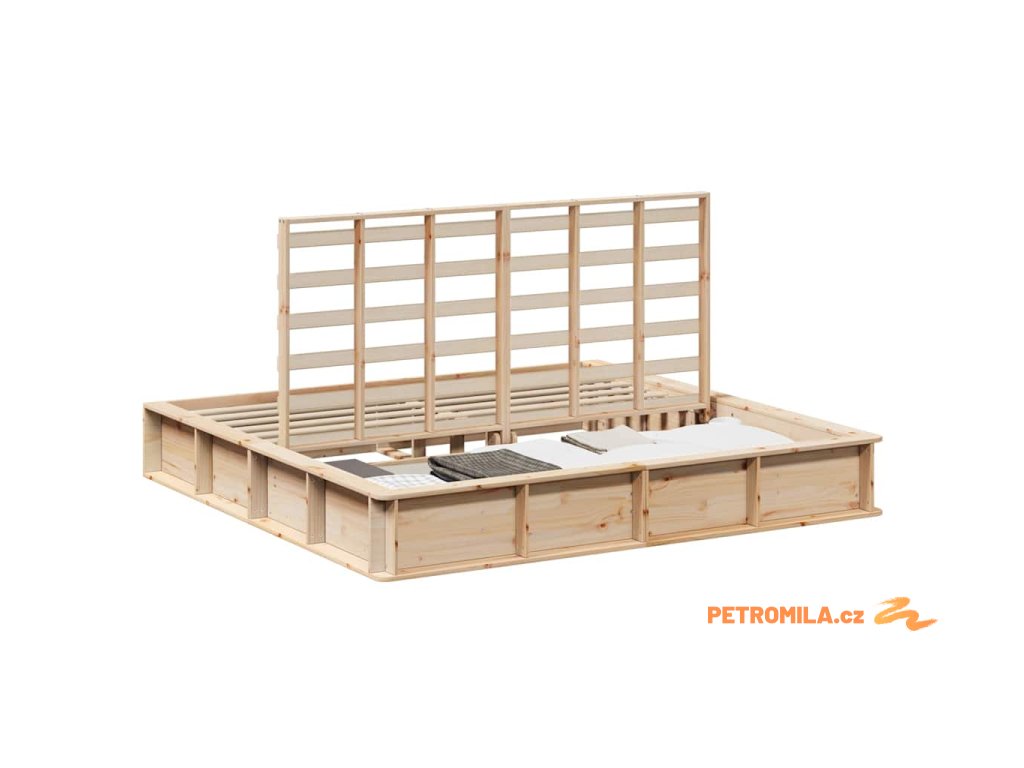 - Masivní borové dřevo: Rám postele je vyroben z odolného masivního borového dřeva, co dodává teplo a eleganci. Tento materiál zajišťuje atraktivní design a dlouhověkost pro pohodlný spánek po dlouhá léta.