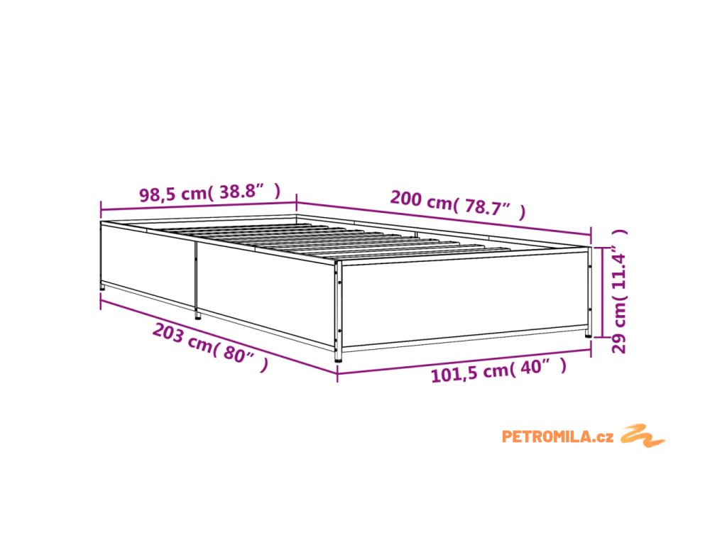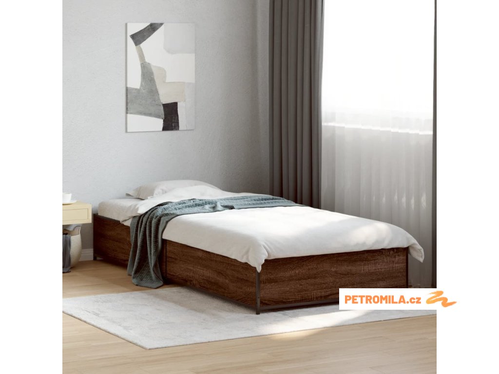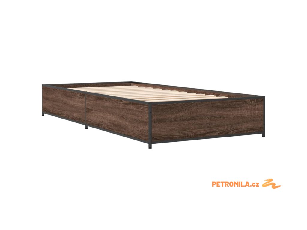 Rám postele hnědý dub 100 x 200 cm kompozitní dřevo a kov
