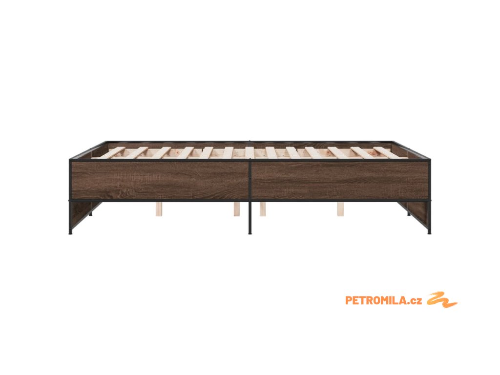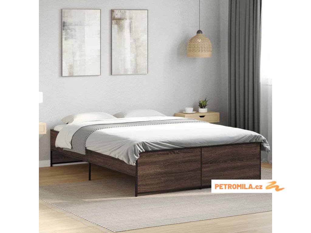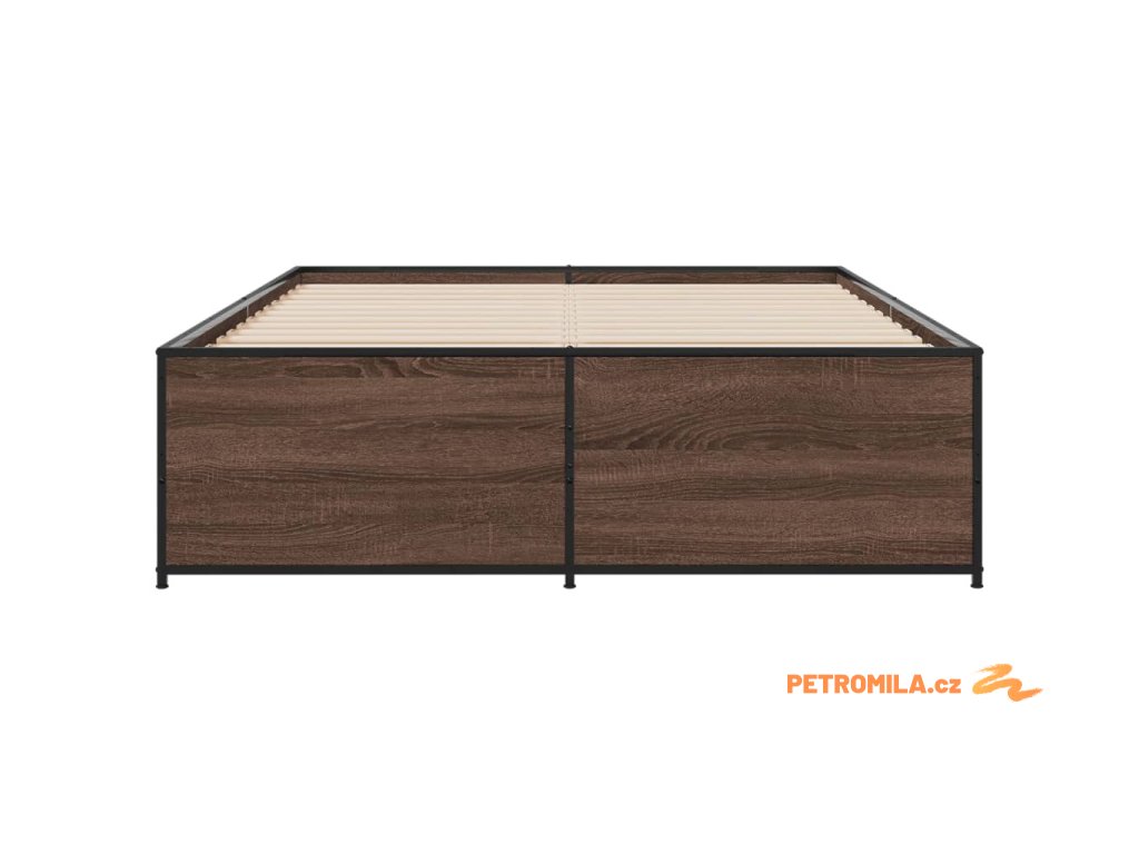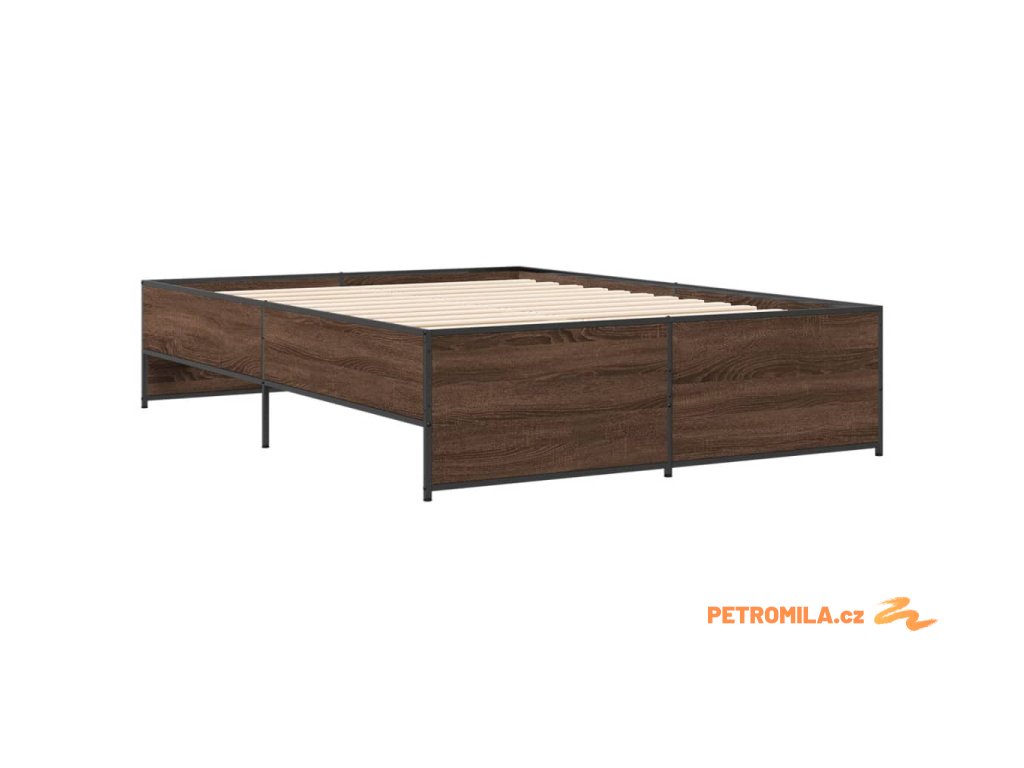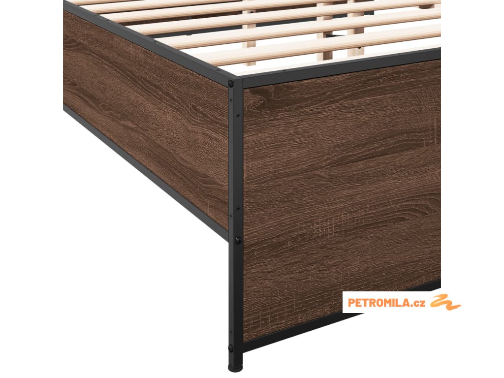 Rám postele hnědý dub 135 x 190 cm kompozitní dřevo a kov