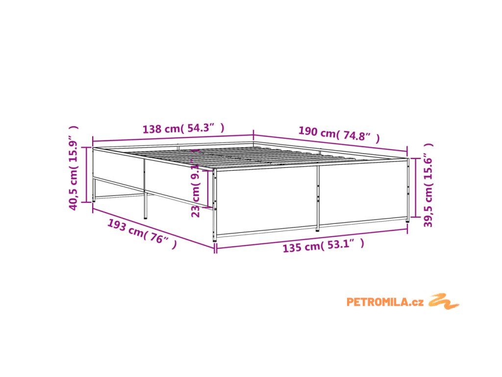 - Celkové rozměry: 193 x 138 x 40,5 cm (D x Š x V)