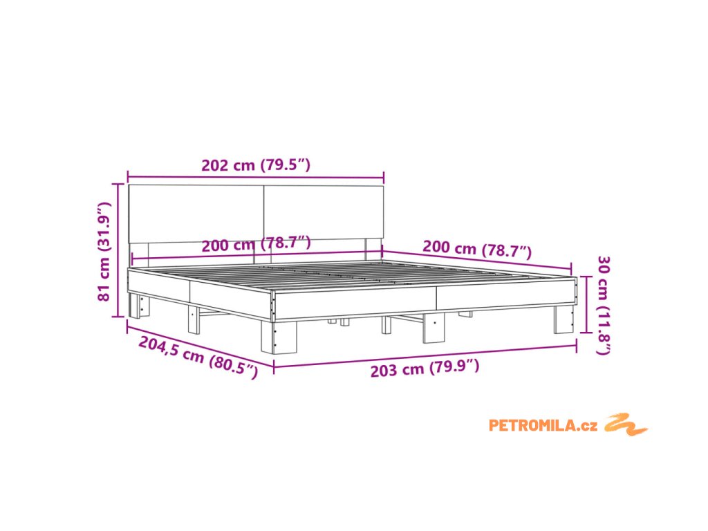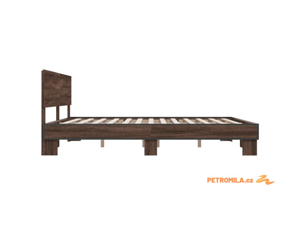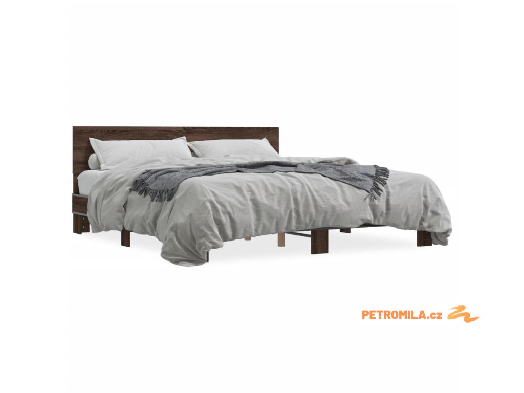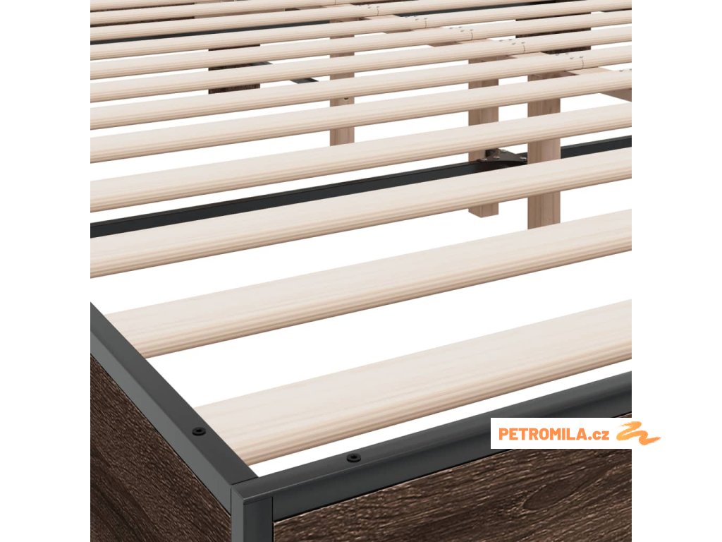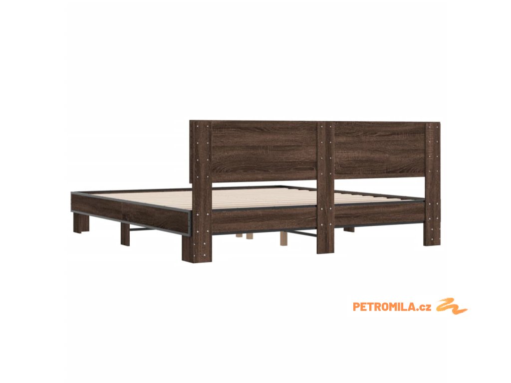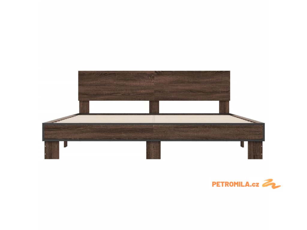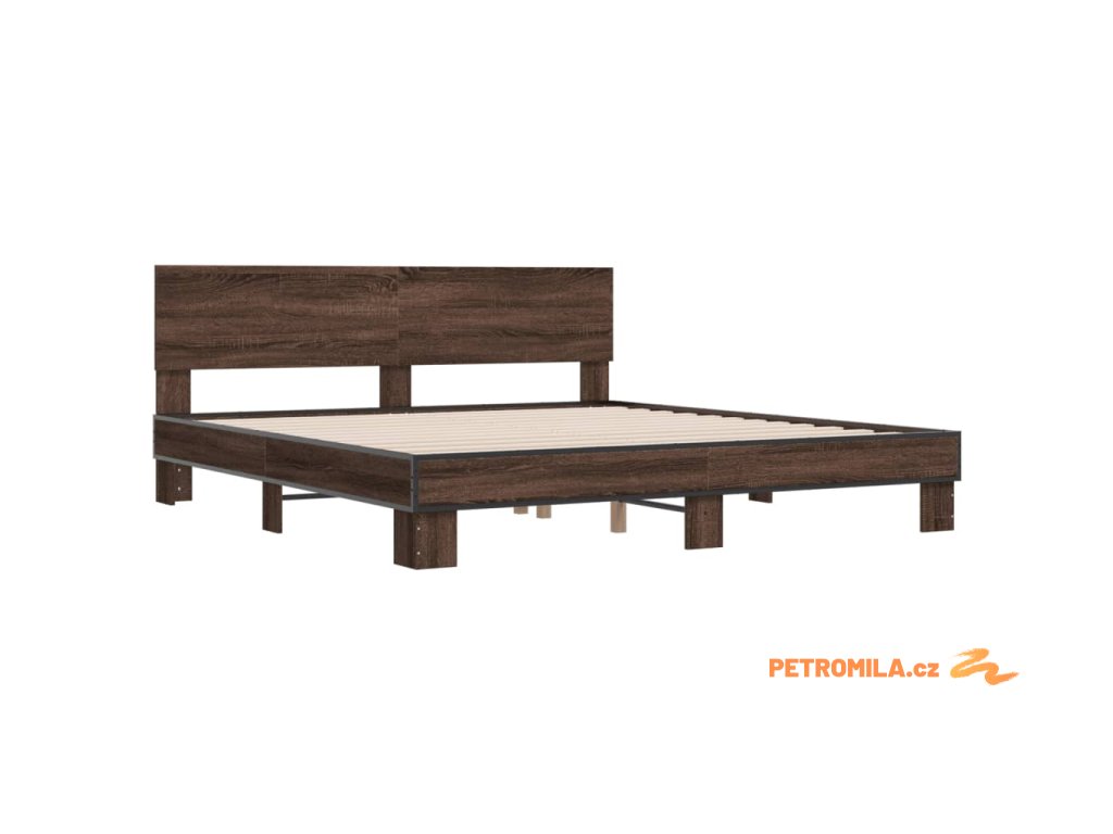 Rám postele hnědý dub 200 x 200 cm kompozitní dřevo a kov