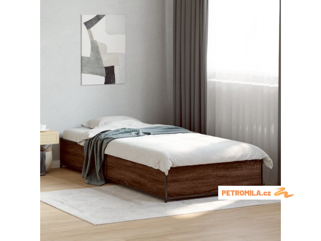 Rám postele hnědý dub 75 x 190 cm kompozitní dřevo a kov