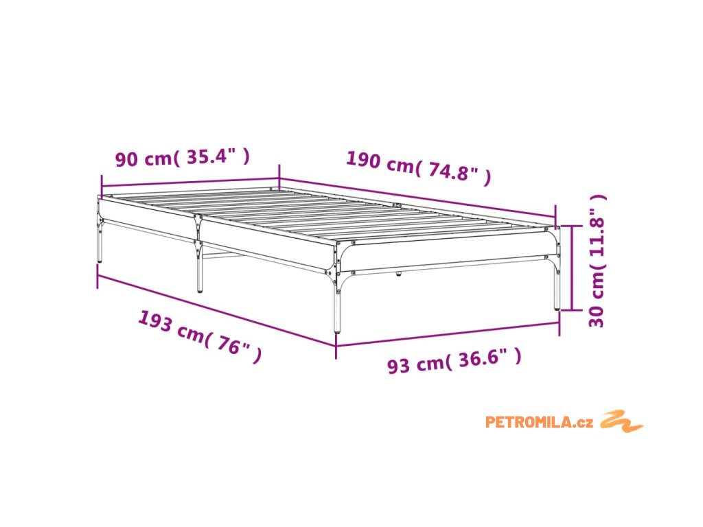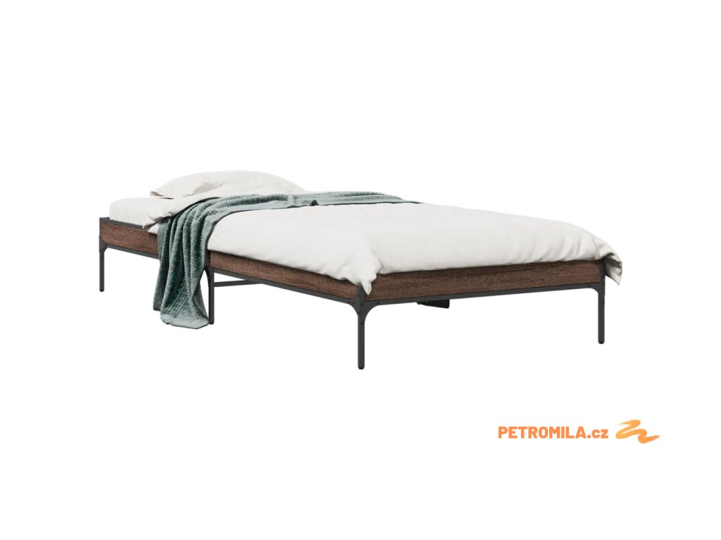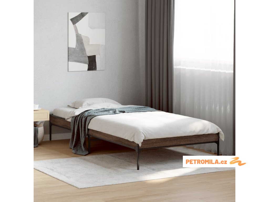 Rám postele hnědý dub 90 x 190 cm kompozitní dřevo a kov