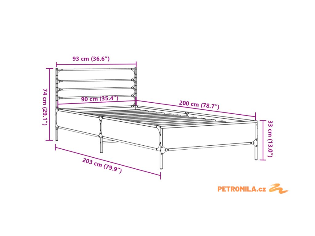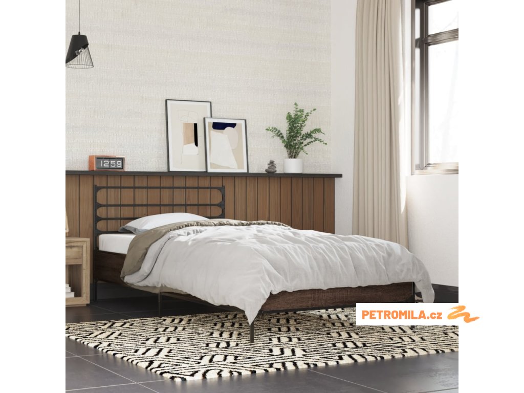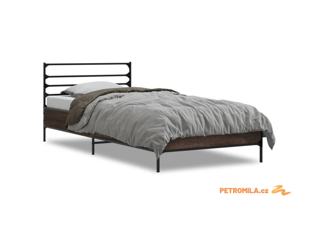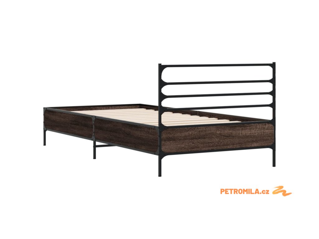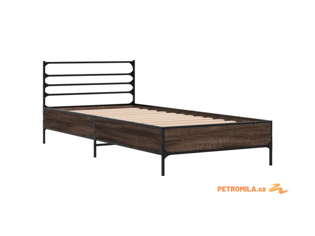 Rám postele hnědý dub 90 x 200 cm kompozitní dřevo a kov