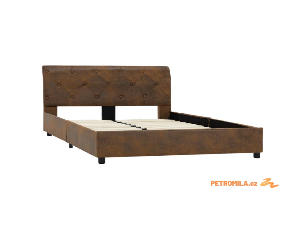 Rám postele hnědý umělá broušená kůže 140 x 200 cm
