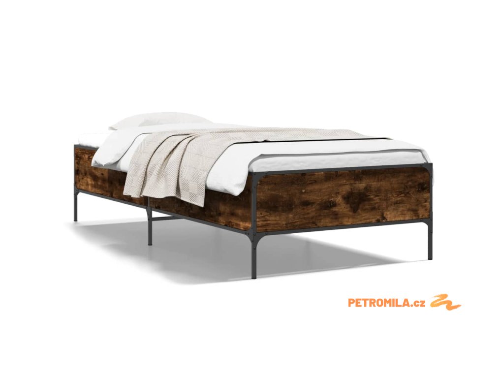 Rám postele kouřový dub 100 x 200 cm kompozitní dřevo a kov