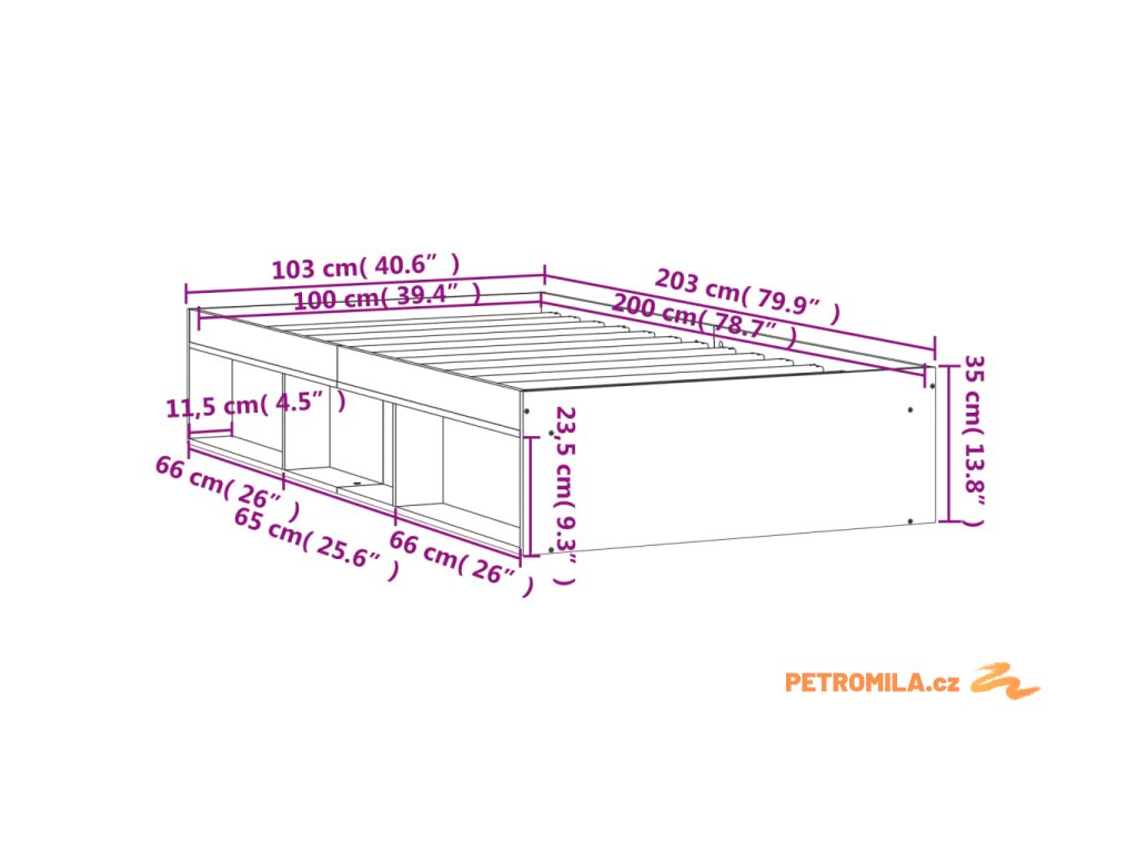 - Vhodné rozměry matrace (matrace není součástí balení): 100 x 200 cm (Š x D)