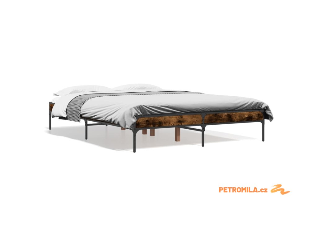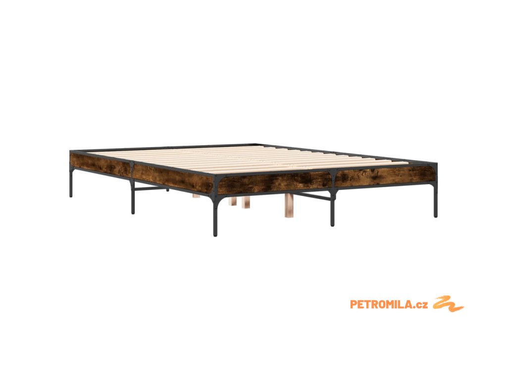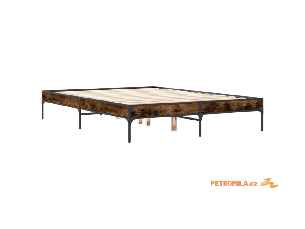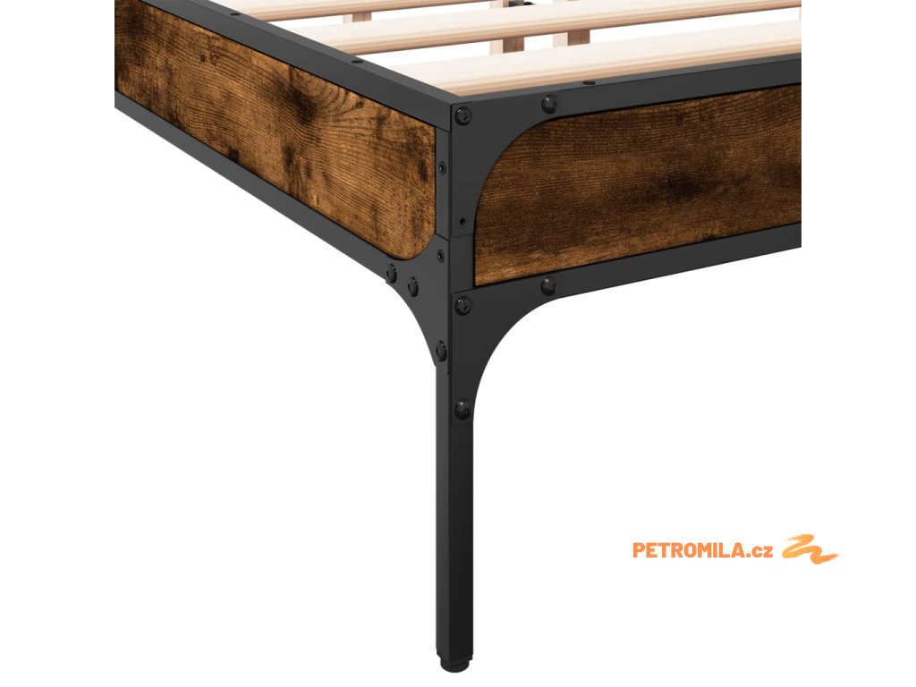 Rám postele kouřový dub 135 x 190 cm kompozitní dřevo a kov