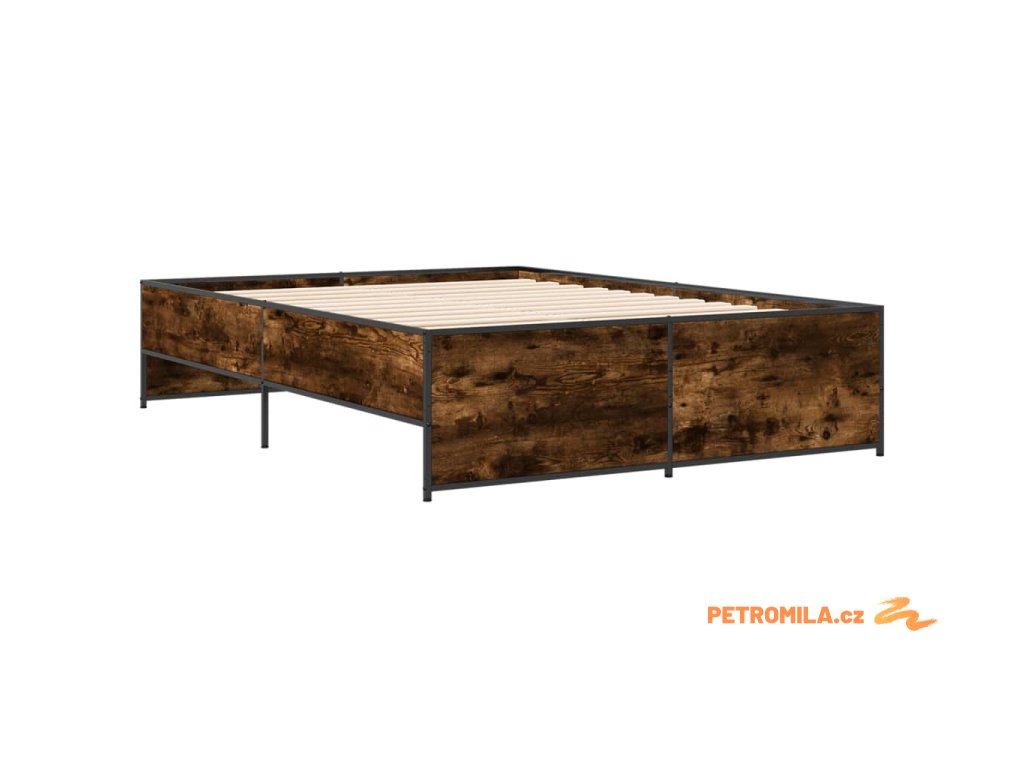 Rám postele kouřový dub 135 x 190 cm kompozitní dřevo a kov