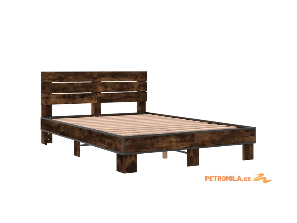 Rám postele kouřový dub 140 x 190 cm kompozitní dřevo a kov