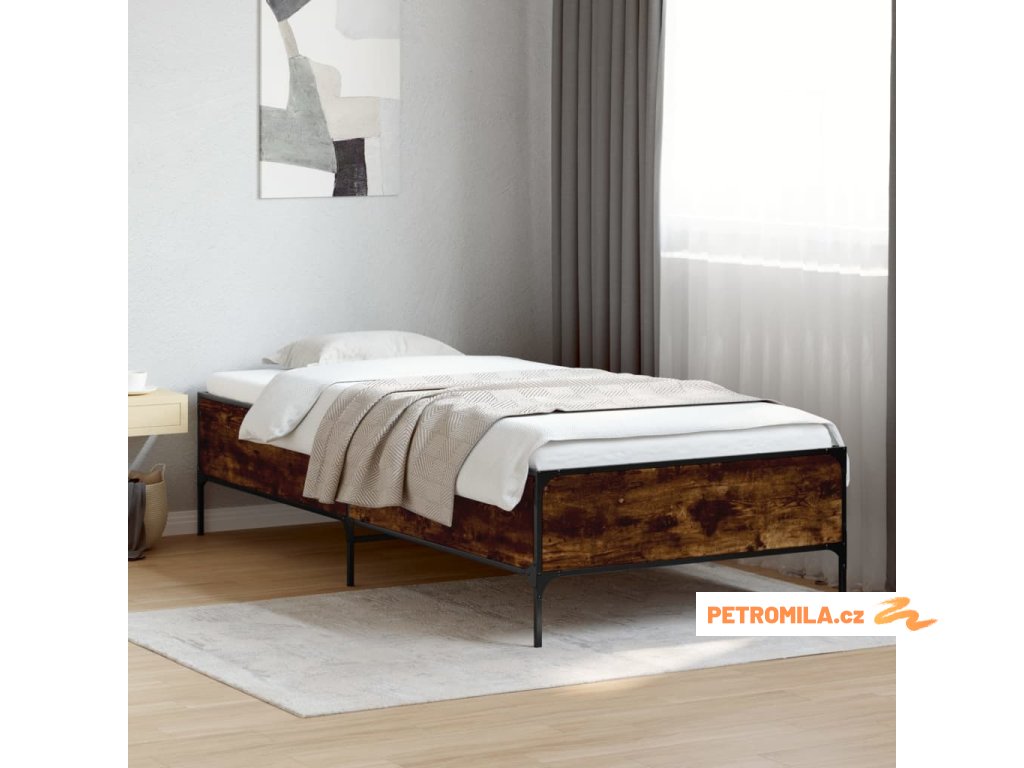 Rám postele kouřový dub 90 x 200 cm kompozitní dřevo a kov