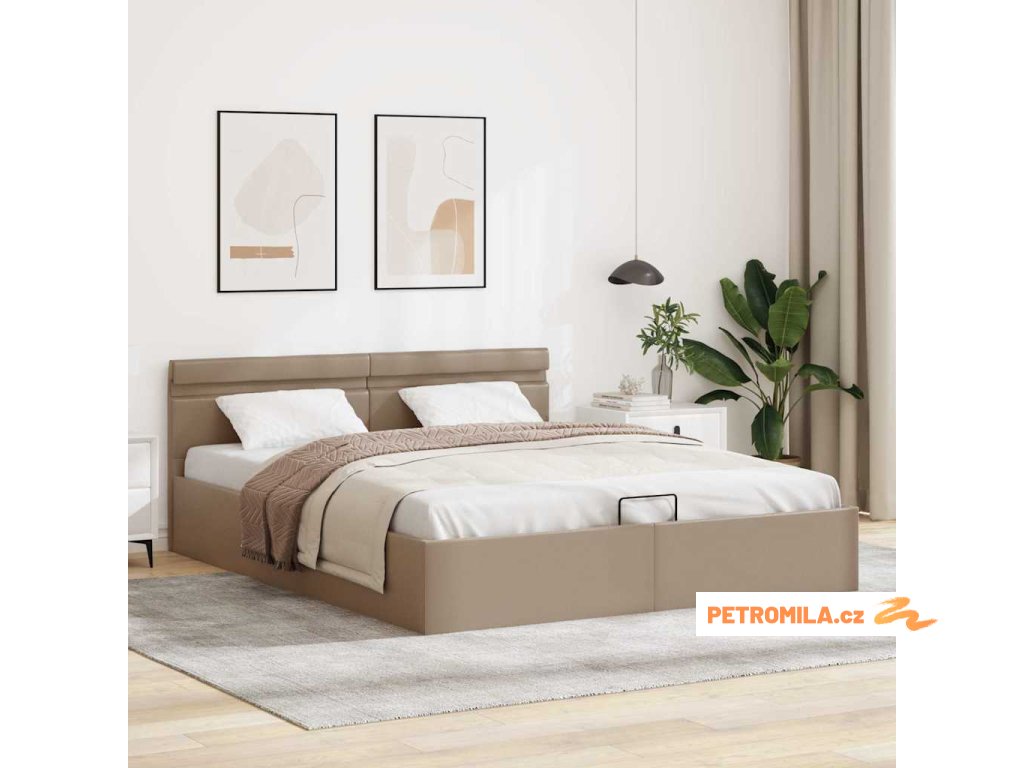 Rám postele LED úložný prostor cappuccino umělá kůže 180x200 cm