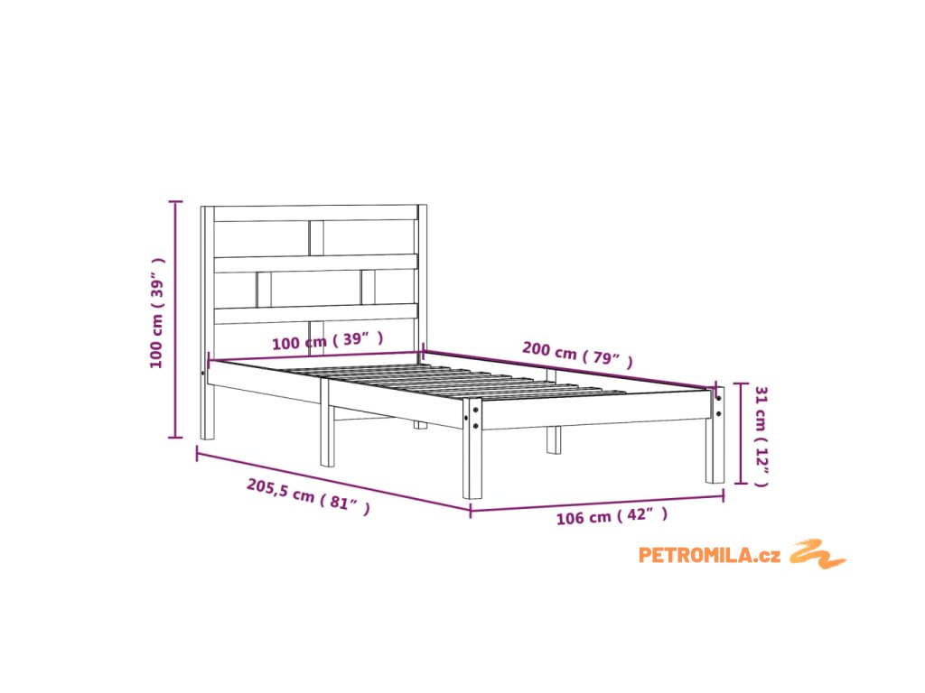 - Tento rám postele je vhodný pro matrace o rozměrech 100 x 200 cm.