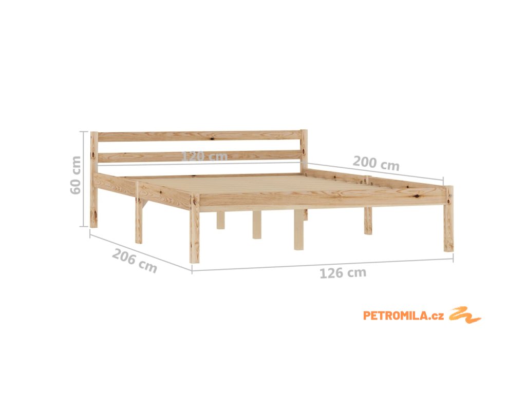 Rám postele je zhotovený z masivního borového dřeva, je tedy nesmírně pevný a odolný. Hodí se na něj matrace o rozměrech 120 x 200 cm.