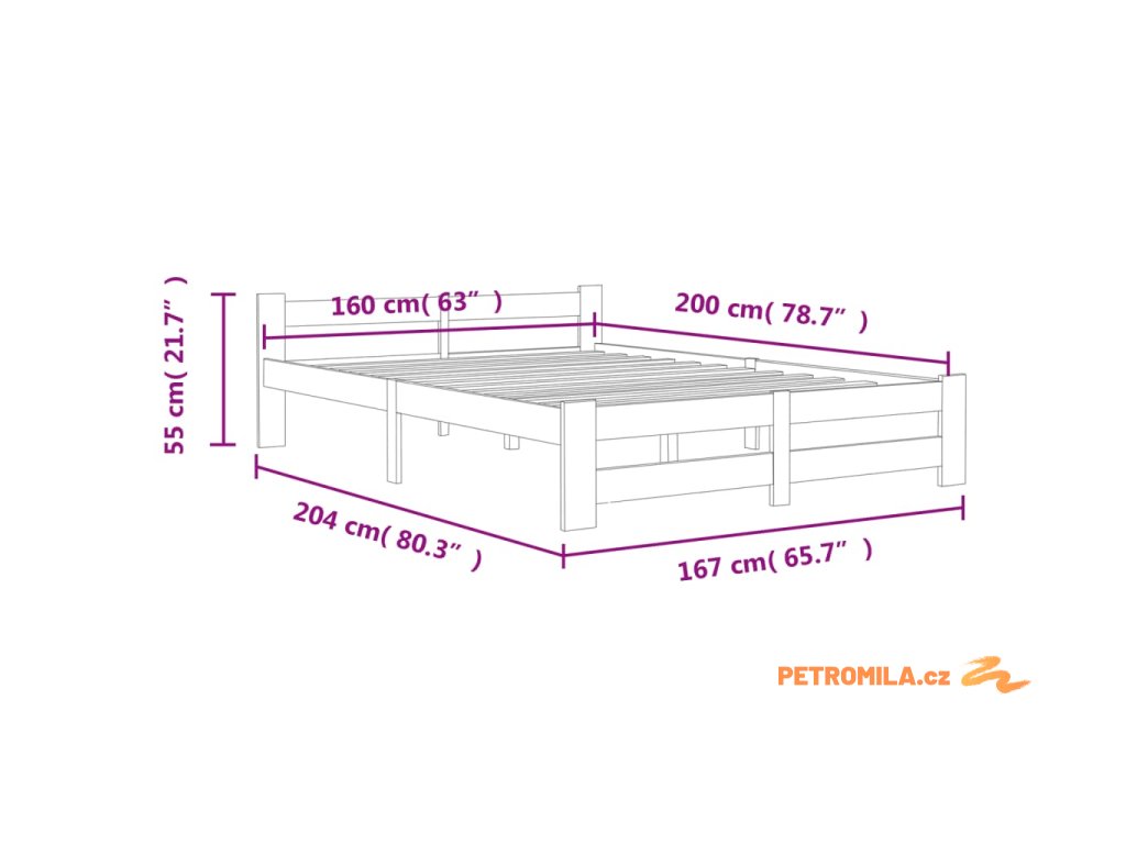 Rám postele je vyrobený z masivního borového dřeva, je tedy mimořádně pevný a má dlouhou životnost. Pevné překližkové lamely nabízejí potřebnou podporu a pohodlí. Je vhodný pro matraci o rozměrech 160 x 200 cm.