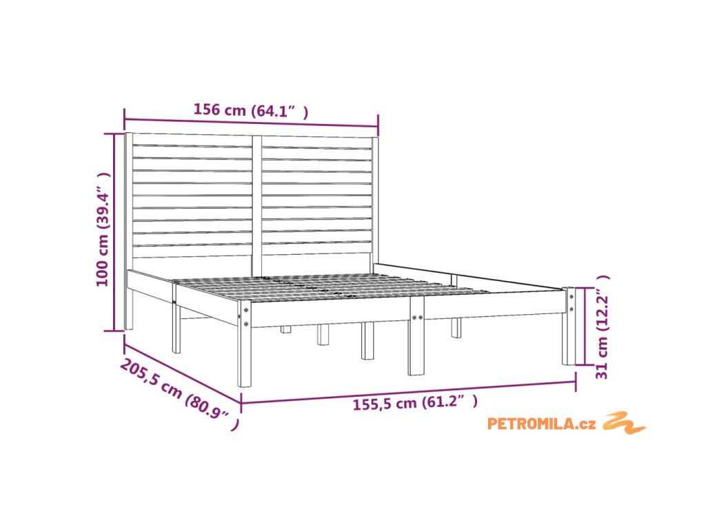 Rám postele masivní dřevo 150 x 200 cm King Size