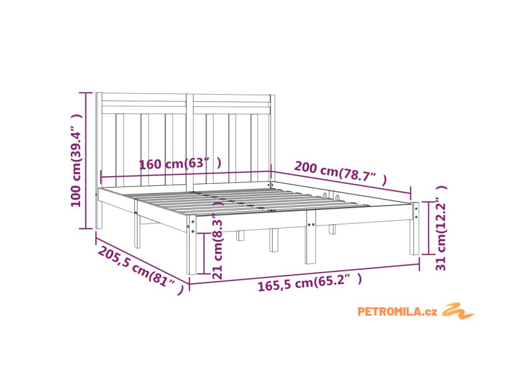 - Rozměry rámu postele: 205,5 x 165,5 x 31 cm (D x Š x V)