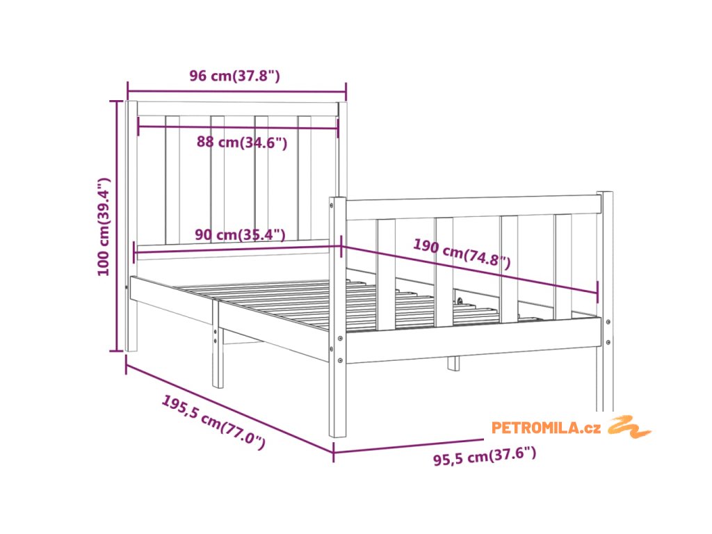 - Rozměry rámu postele: 195,5 x 95,5 x 69,5 cm (D x Š x V)