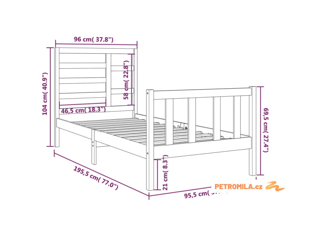 - Rozměry čela postele: 96 x 4 x 104 cm (Š x H x V)