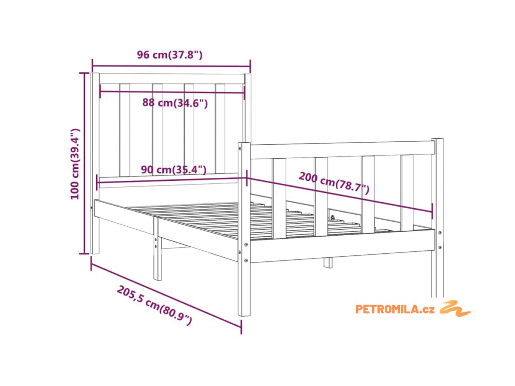 - Celkové rozměry rámu postele: 205,5 x 96 x 100 cm (D x Š x V)
