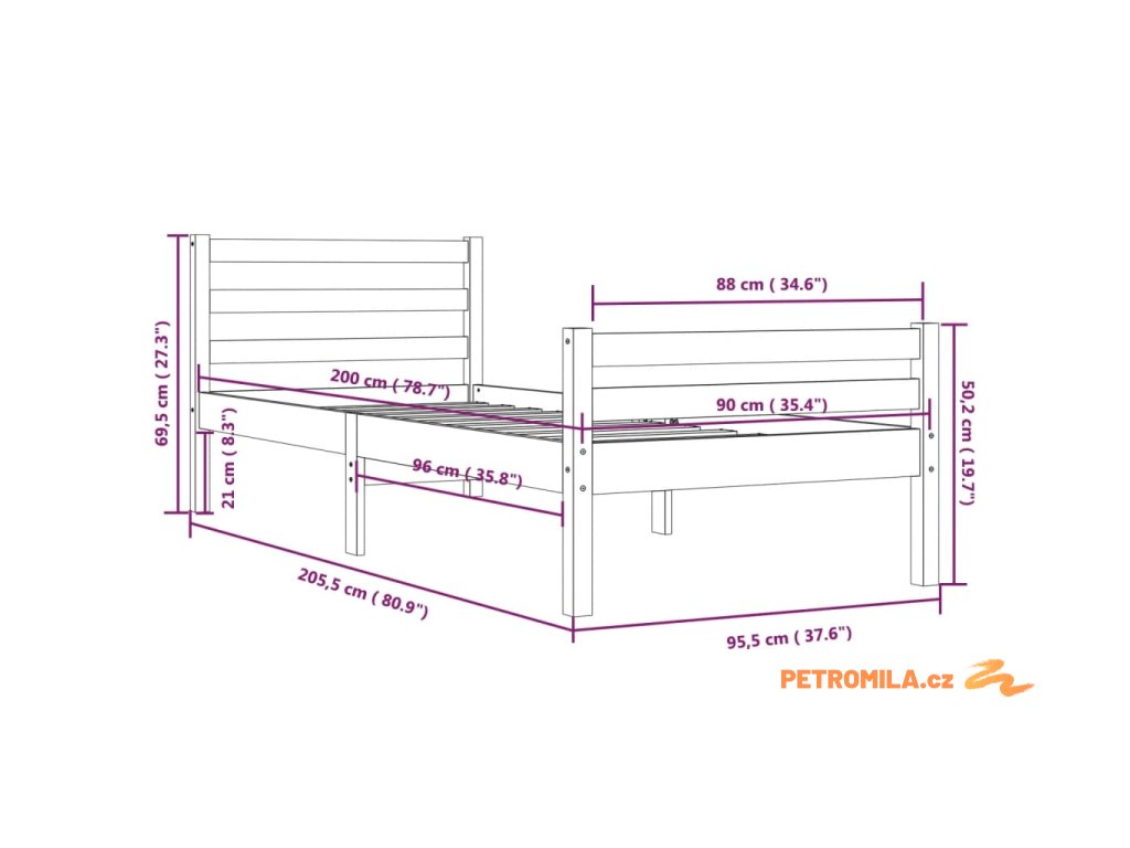 - Tento rám postele je vhodný pro matrace o rozměrech 90 x 200 cm.