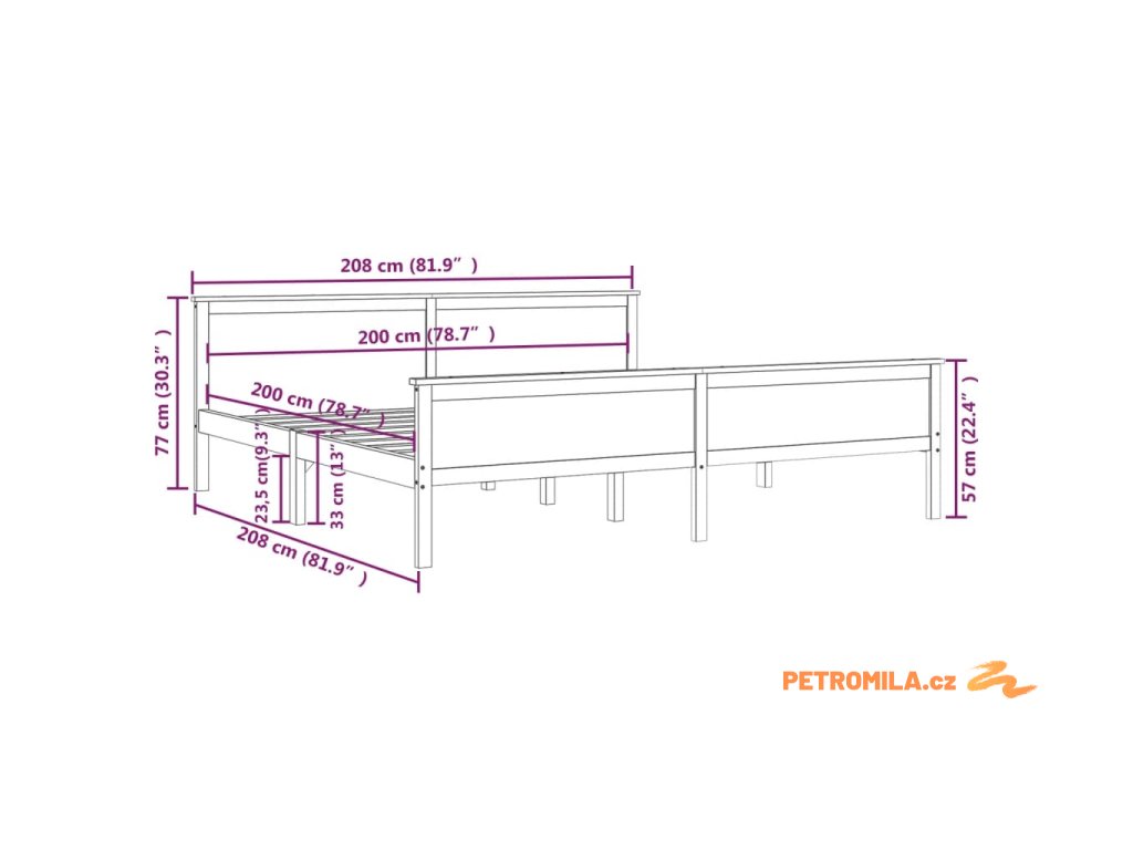Rám postele masivní dřevo borovice 200 x 200 cm