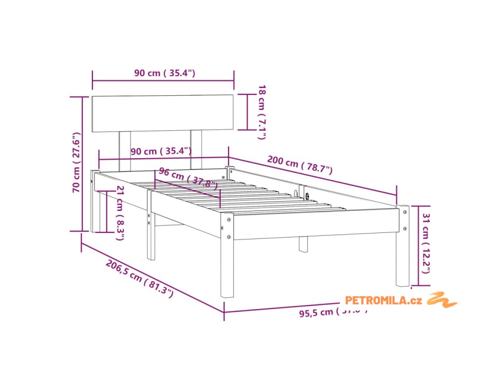 Rám postele je vyrobený z masivního borového dřeva, je tedy mimořádně odolný a má dlouhou životnost. Pevné lamely nabízí potřebnou oporu a klasické čelo vám umožní užívat si při čtení nebo sledování filmu pohodlí a ničím nerušený odpočinek. Na toto jednolůžko se hodí matrace o rozměrech 90 x 200 cm. Dopřejte si na této posteli kvalitní spánek každou noc!