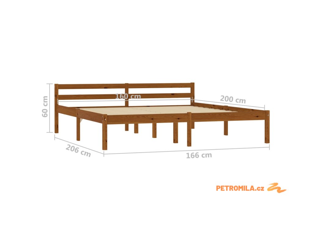 Rám postele medově hnědý masivní borovice 160 x 200 cm