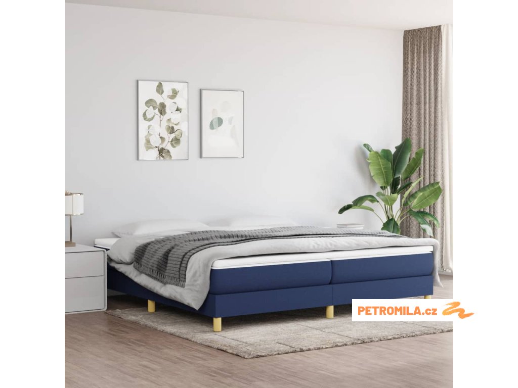 Rám postele s boxspringem modrý 200 x 200 cm textil