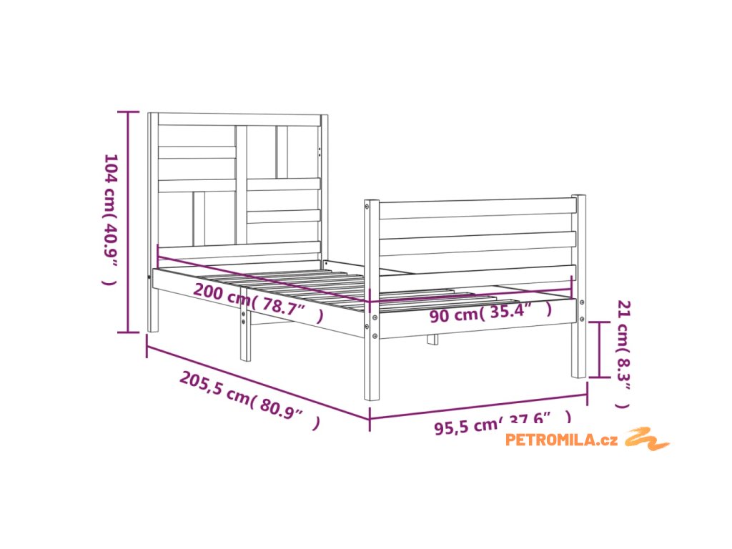 - Celkové rozměry postele: 205,5 x 95,5 x 104 cm (D x Š x V)