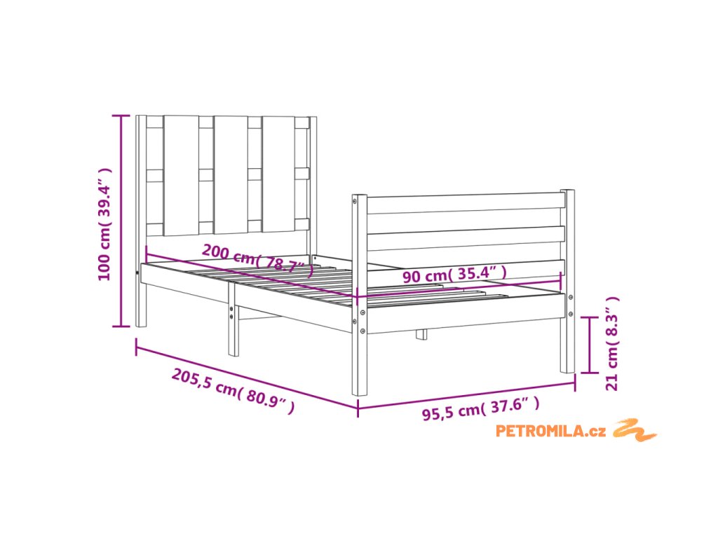 Rám postele s čelem 90 x 200 cm masivní dřevo