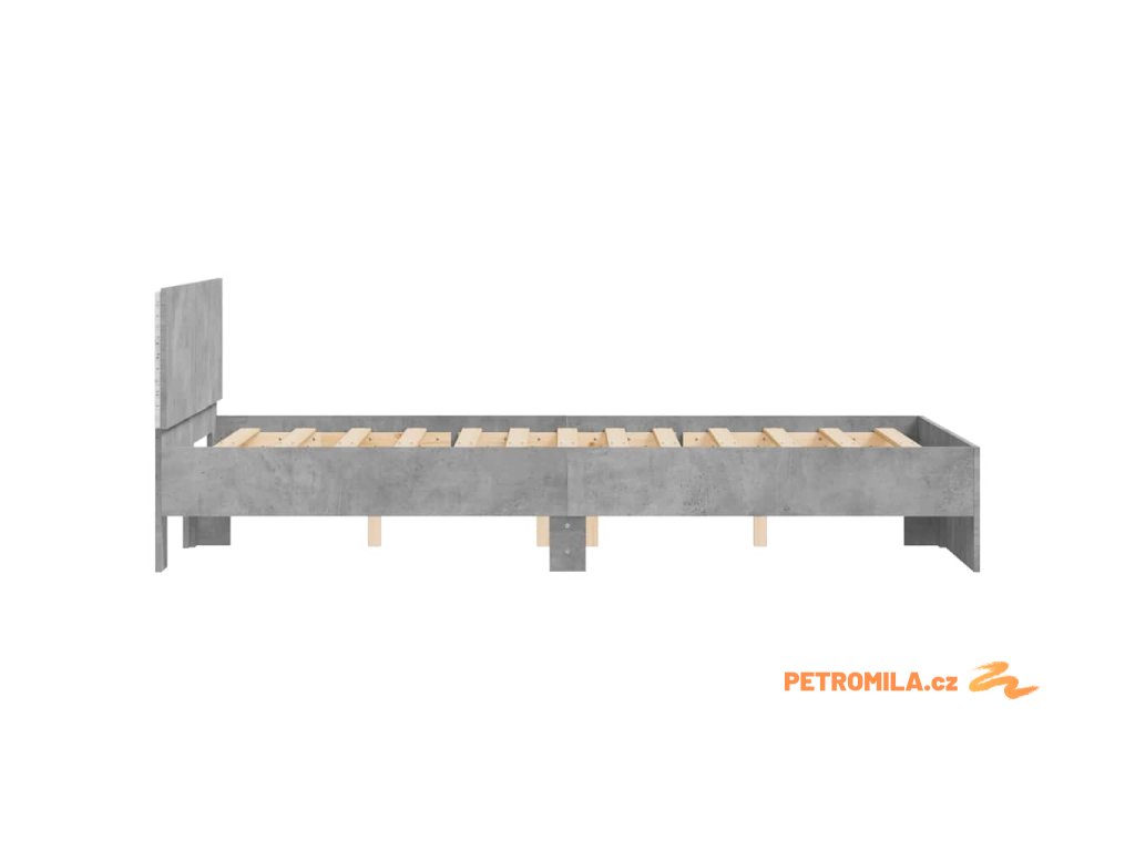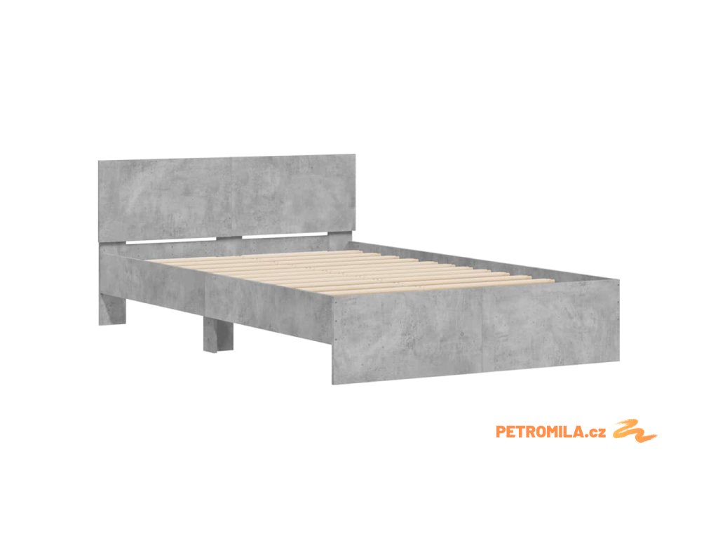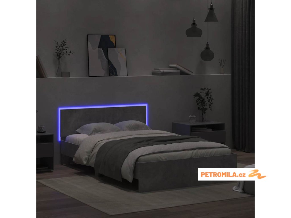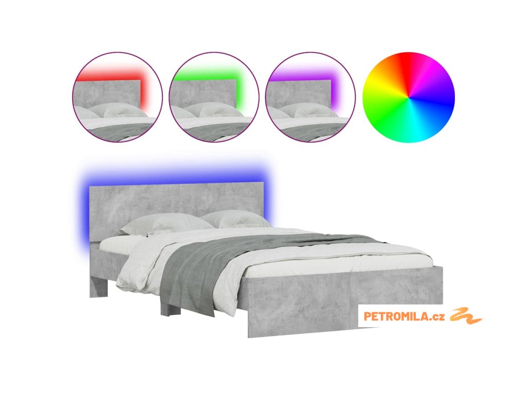 Rám postele s čelem a LED osvětlením betonově šedý 120 x 190 cm