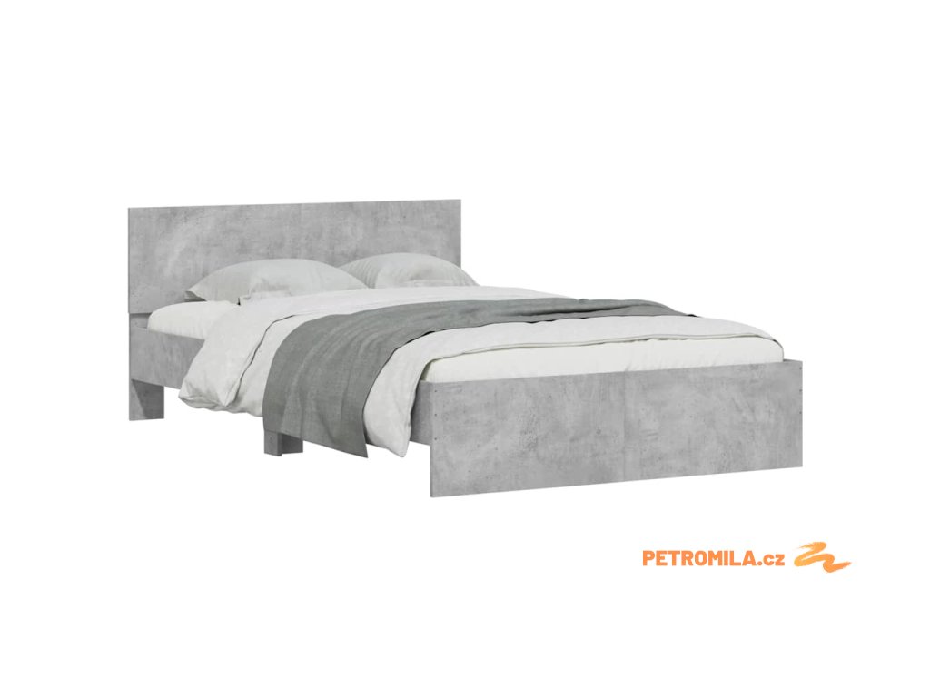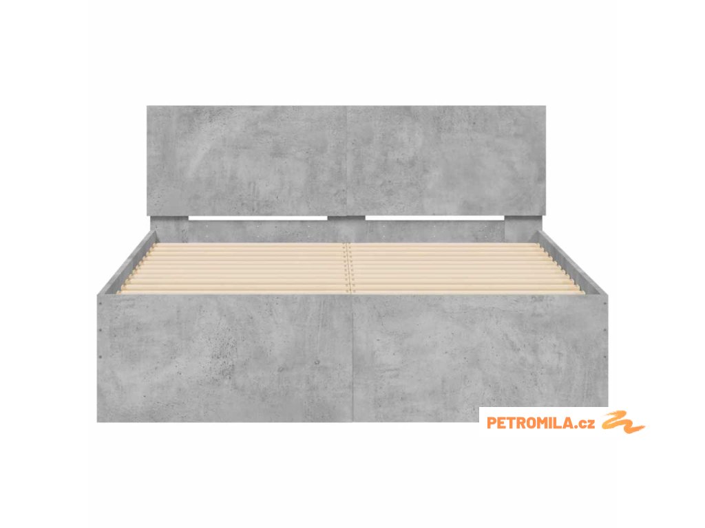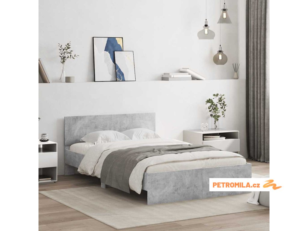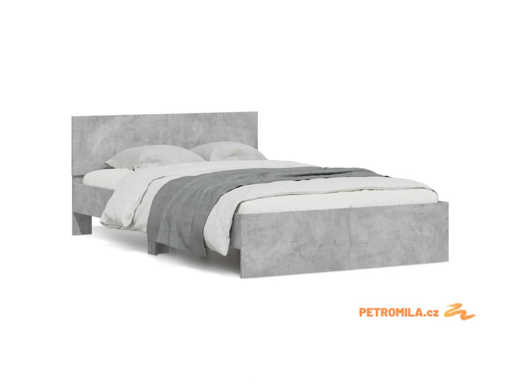 Rám postele s čelem a LED osvětlením betonově šedý 120 x 190 cm