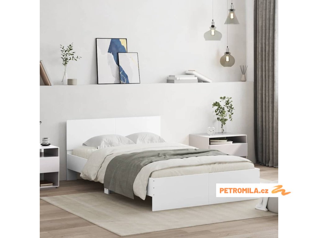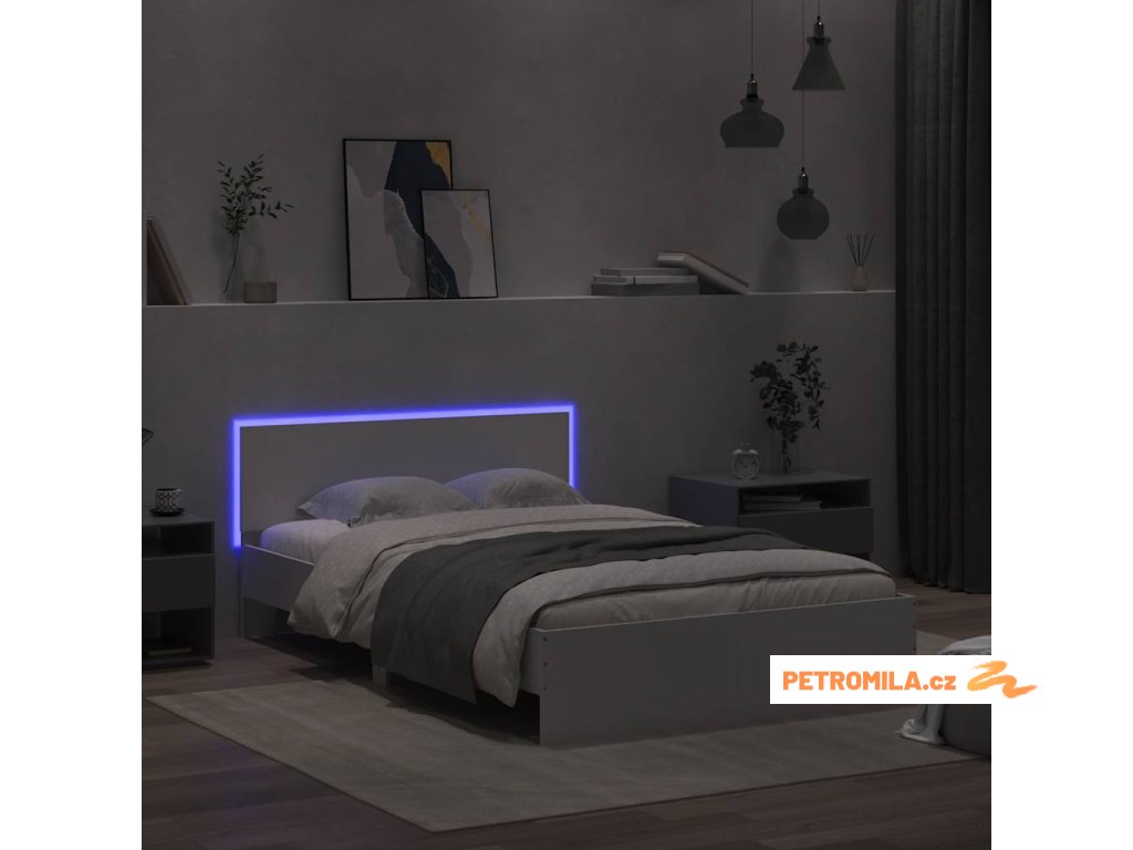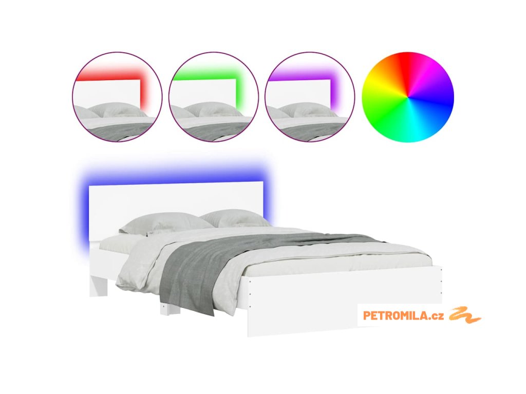 Rám postele s čelem a LED osvětlením bílý 120 x 190 cm