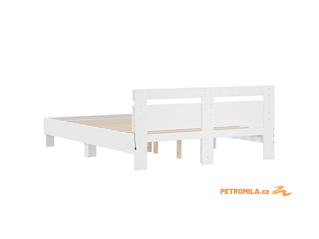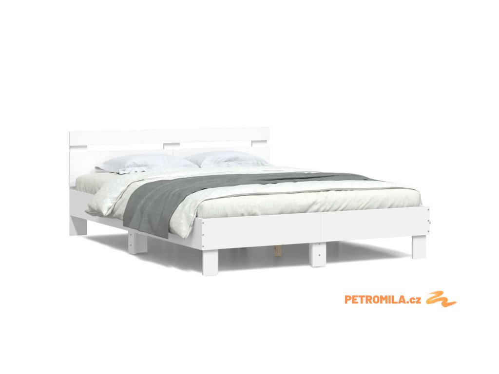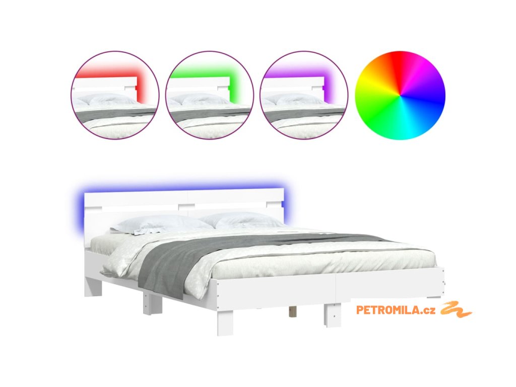 Rám postele s čelem a LED osvětlením bílý 150 x 200 cm