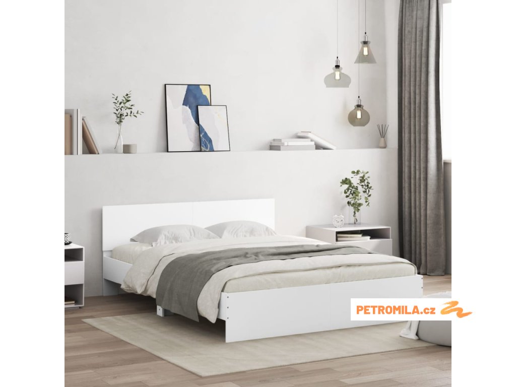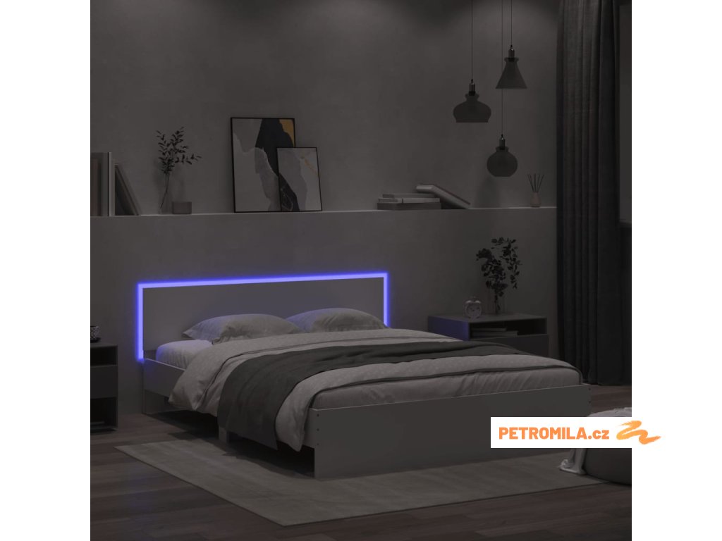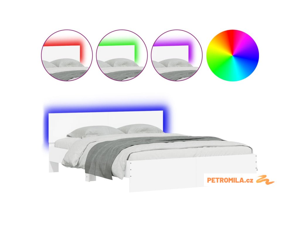 Rám postele s čelem a LED osvětlením bílý 160 x 200 cm