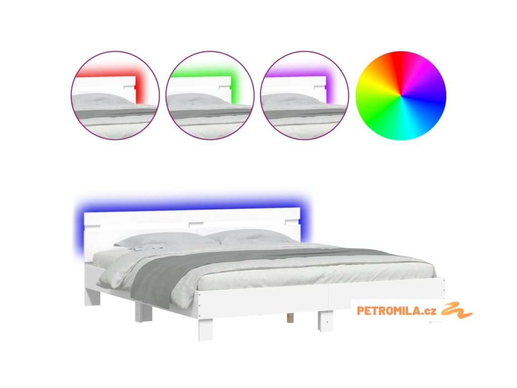 Rám postele s čelem a LED osvětlením bílý 200 x 200 cm