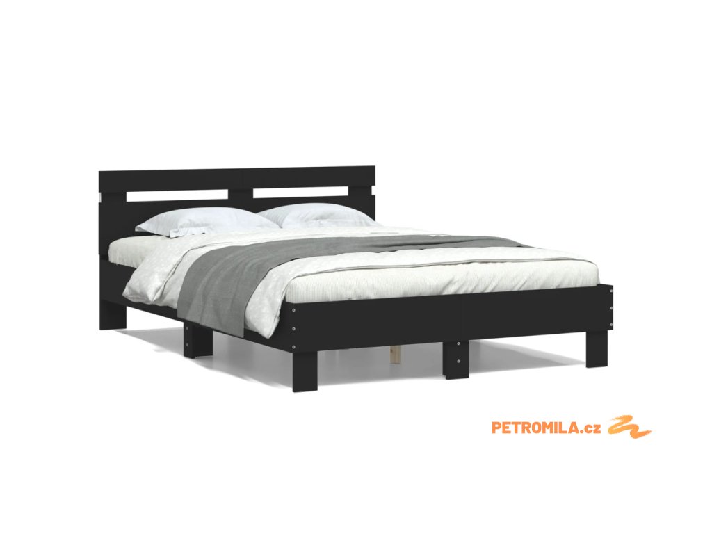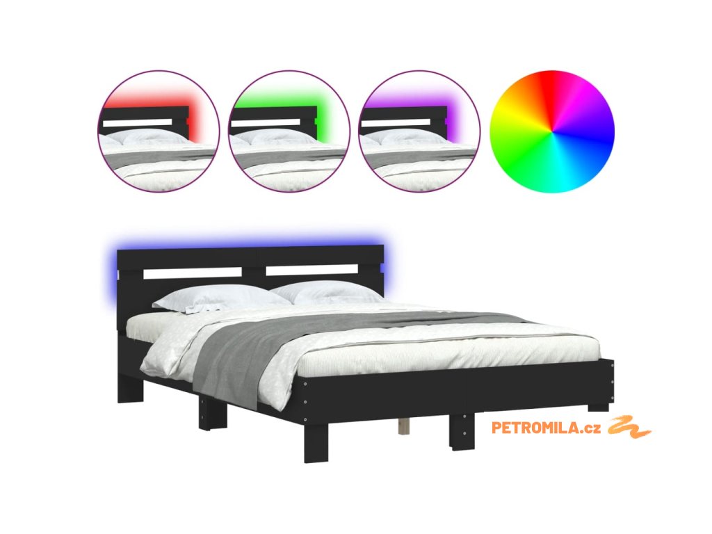 Rám postele s čelem a LED osvětlením černý 135 x 190 cm