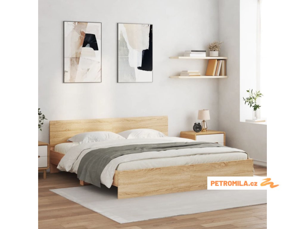 Rám postele s čelem a LED osvětlením dub sonoma 200 x 200 cm